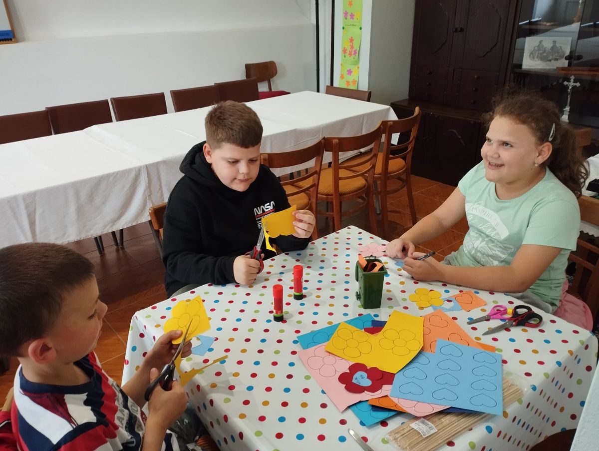 Deti na besiedke pripravili ku dňu matiek malé prekvapenie. Na dvoch stretnutiach vyrábali papierové kvetinky. V druhú májovú nedeľu 12. 5. ich po službách Božích rozdávali mamičkám, babičkám či krstným mamám, ktoré boli v kostole v Santovke. Ďakujeme za milý darček :) A tým besiedkarom, ktorí nemohli kvôli chorobe prísť, želáme skoré uzdravenie.